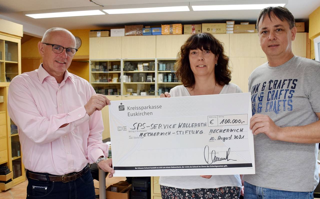 Die Euskirchener Firma „F&S concept“ hat 50.000 Euro gegeben. Der Inhaber des Unternehmens SPS-Service Wallerath zusammen mit seiner Frau 100.000 Euro. Die Mechernich-Stiftung unterstützt Flutopfer in Mechernich, die jetzt in finanzielle Not geraten sind und keine Elementarversicherung haben. Nach Angaben der Stiftung sind im Mechernicher Stadtgebiet rund 2000 Menschen von dem Hochwasser betroffen.