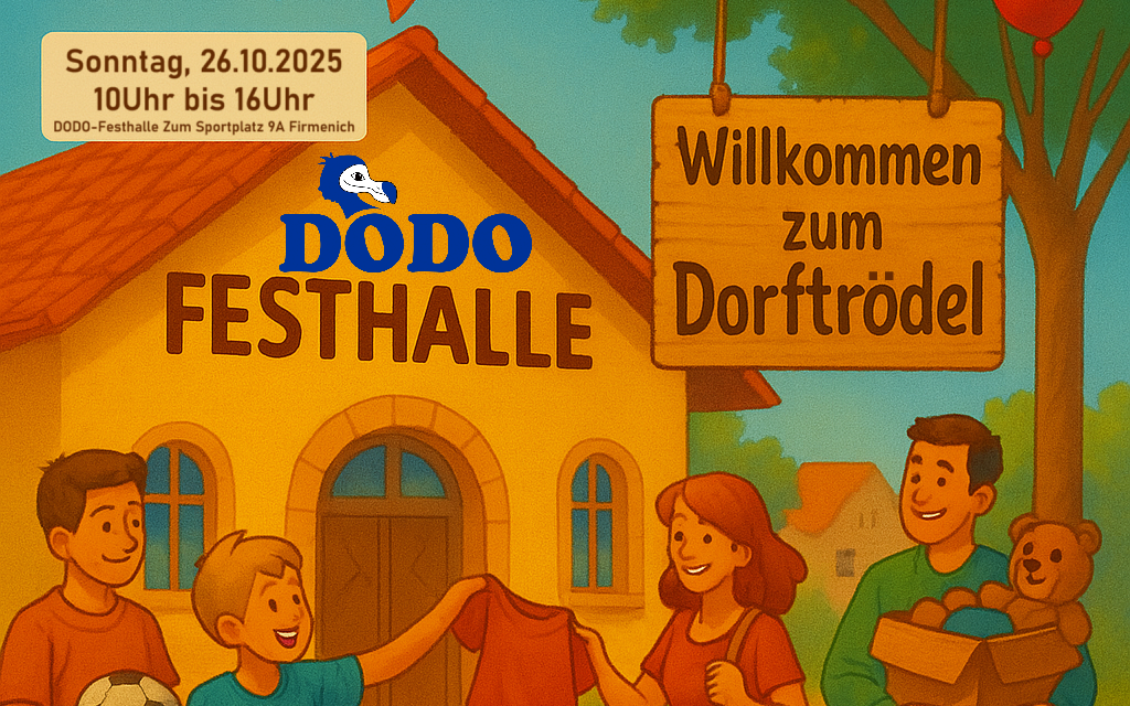Auf dem großen Trödelmarkt werden Kinderkleidung, Spielzeug, Bücher, Haushaltswaren und handwerkliche Unikate angeboten. Er findet von 10 bis 16 Uhr in der DODO-Festhalle statt. Für ein besonders gemütliches Bummelerlebnis sorgt außerdem eine Auswahl an Kuchen und kleinen Leckereien.