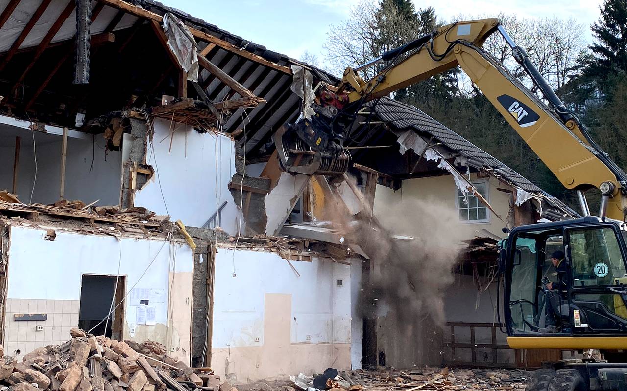 Jetzt ist der Bagger angerückt. Die Flut hat das Gebäude laut Stadt so stark zerstört, dass es nicht repariert werden konnte. Bis zu 1,80 m hoch stand das Wasser in der Werkstatt und der Fahrzeughalle. Dadurch wurden auch viele Fahrzeuge zerstört. In der Schreinerei wurde eine Außenwand vom Fundament gedrückt und auch die Umkleideräume, Toiletten und das Büro wurden vollkommen verwüstet. Als Ausweichquartier wurde eine Halle in Dreiborn angemietet. Wegen der langen Lieferzeiten ist es allerdings schwer, neue Fahrzeuge und Geräte zu beschaffen. Bundeswehr und andere Bauhöfe haben deshalb Geräte und Fahrzeuge ausgeliehen oder gespendet.