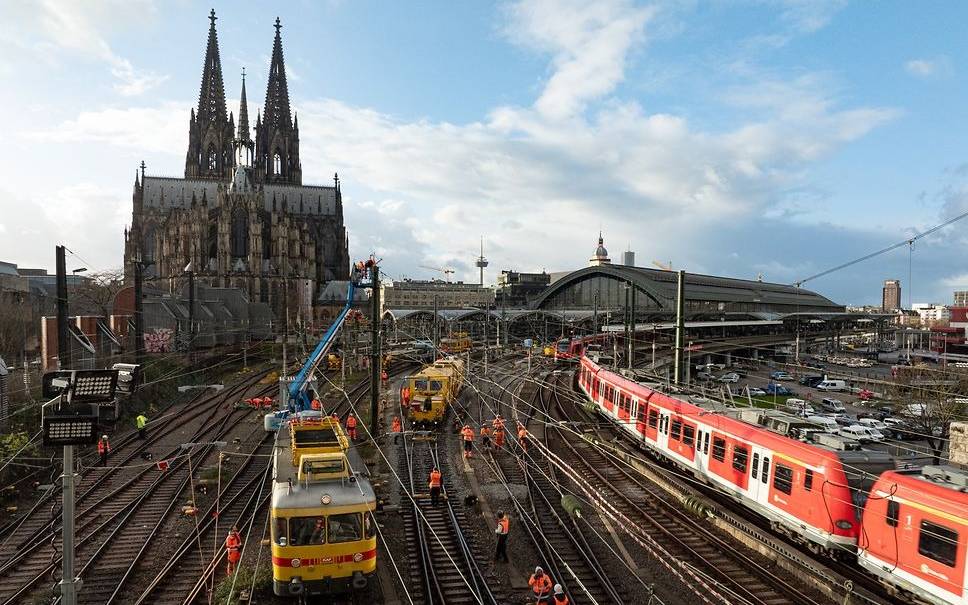 Seit einer Woche werden umfangreiche Arbeiten durchgeführt: Zwei Weichen und Oberleitungen wurden erneuert, Kabel verlegt und die Bahnsteige an Gleis 8 und 9 verlängert. Bis zu 120 Fachkräfte waren im Einsatz, um die Weichen zu reparieren, Schienen in Richtung Hohenzollernbrücke auszutauschen und die Oberleitungsanlage zu erneuern.