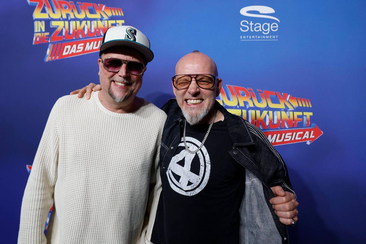 Marty McFly und Doc Brown gehen jetzt in Hamburg auf Zeitreise.© Georg Wendt/dpa