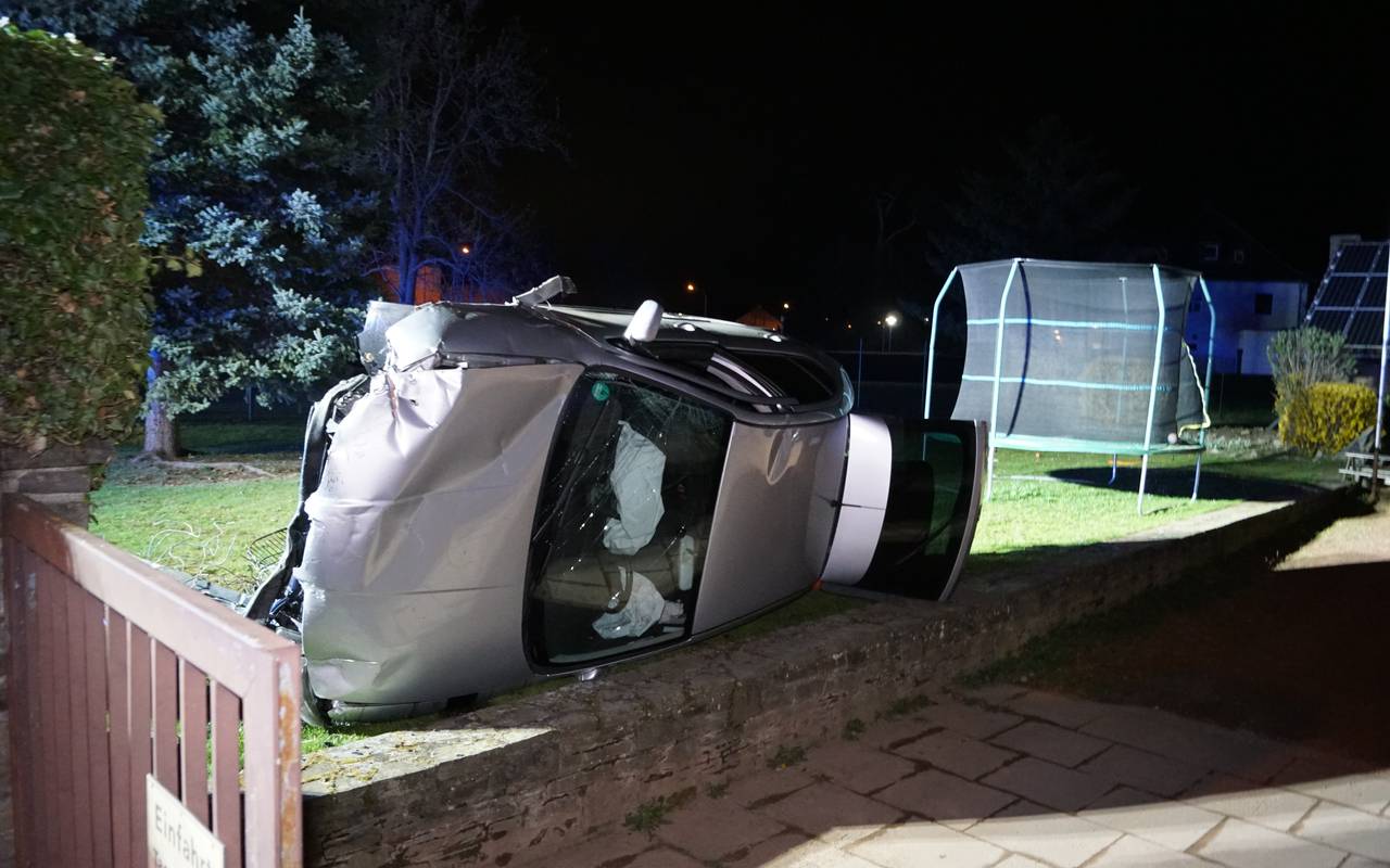 Gegen 1 Uhr kam der Notruf bei den Rettungskräften rein. Ein Auto war auf der Stotzheimer Straße in einen Vorgarten geschleudert und auf der Seite liegen geblieben.