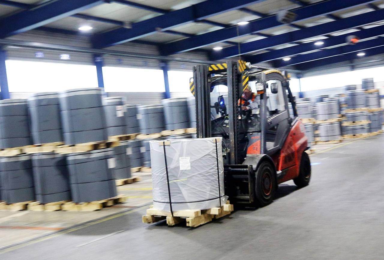 EIn Gabelstapler in einem Lager