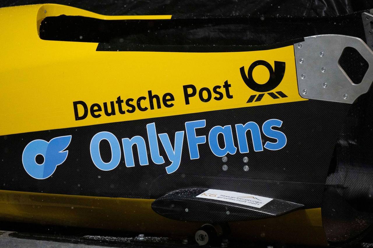 Auch auf dem Bob von Lisa Buckwitz wird für die Erotik-Plattform geworben. (Archivbild) © Sebastian Kahnert/dpa