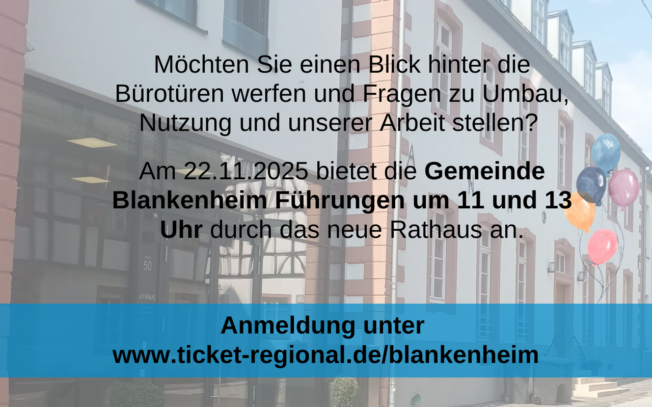 In den vergangenen Jahren wurde das denkmalgeschützte Haus von 1738 modernisiert, ausgebaut und zur Gemeindeverwaltung umgebaut. Bei den Führungen sind auch Mitarbeitende vor Ort, die an dem Projekt „Umbau Konsum“ beteiligt waren, um Fragen zu beantworten. Die Führungen im Blankenheimer Rathaus sind kostenfrei, ihr müsst euch aber anmelden. Den Link dazu findet hier <<<hier>>>