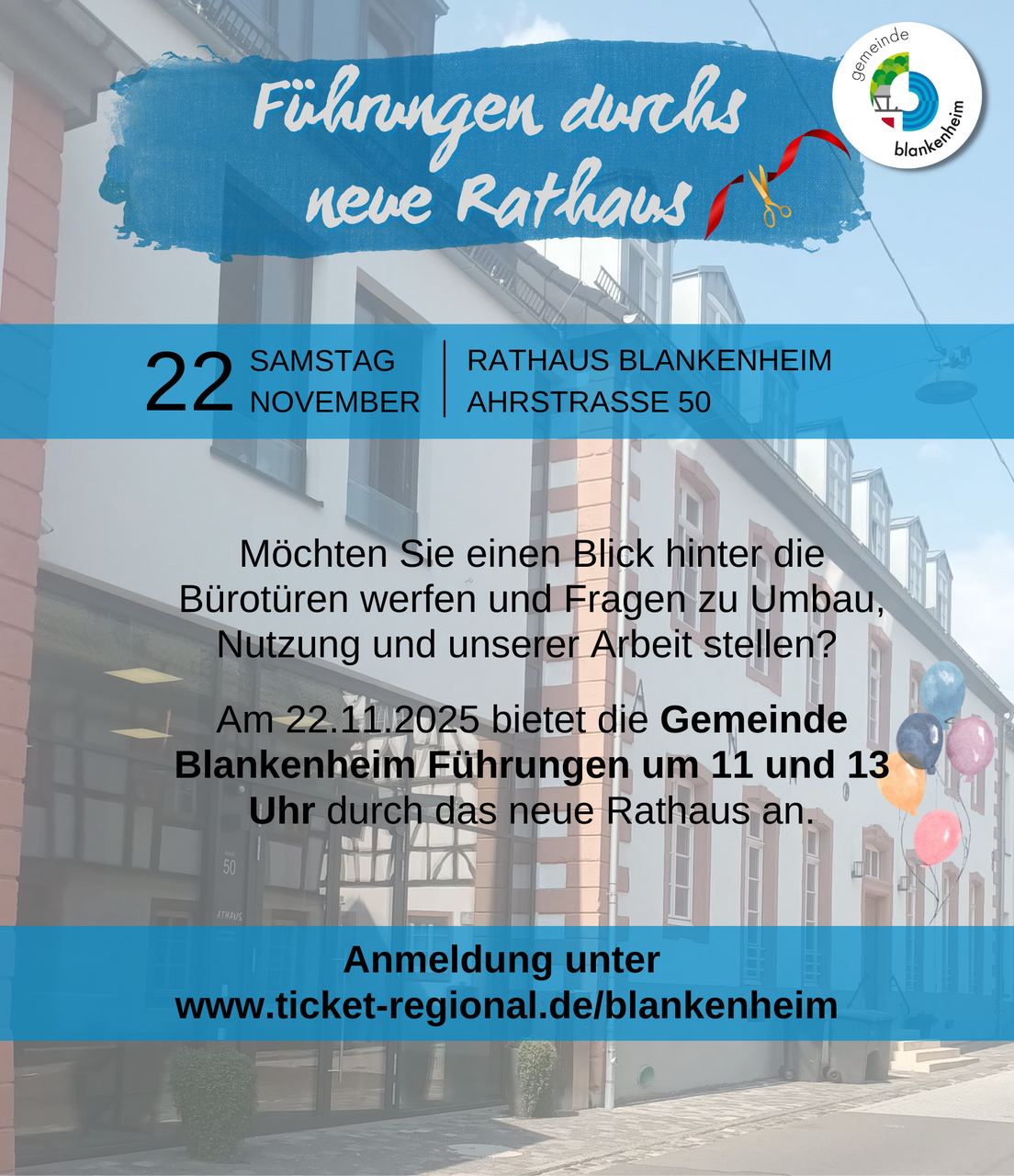 Seit vier Monaten wird das neue Rathaus in Blankenheim nun genutzt. Jetzt gibt es die Möglichkeit, hinter die Türen zu gucken. Die Gemeindeverwaltung bietet Ende November Führungen an. Es können dann auch Fragen zum Umbau, zur Nutzung und zur Arbeit der Verwaltung gestellt werden.