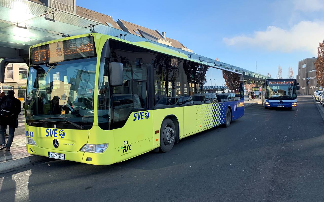 Die Busse in Euskirchen fahren an Silvester anders als an normalen Sonntagen. Tagsüber fährt noch alles nach Sonntagsfahrplan. Zum Abend hin gibt es Zusatzfahrten. Zum Beispiel am Euskirchener Bahnhof. Immer um XX:35 fahren da ab 20 Uhr zusätzliche Busse.