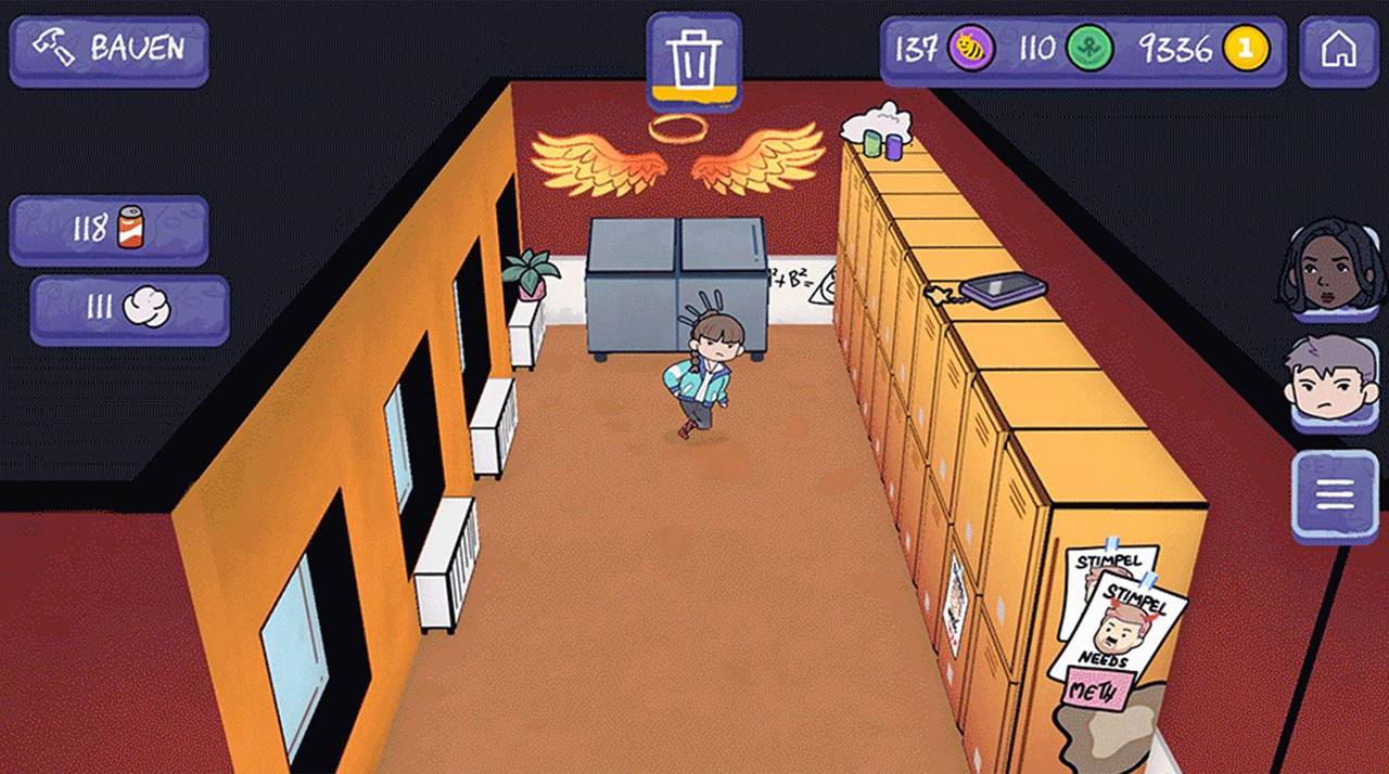 Wer sich das kostenlose Spiel für iOS und Android herunterlädt, muss sich zunächst einen Charakter erstellen. In der Schule beginnt dann eine Art cozy Rollenspiel: Von Lehrer Frank Stimpel bekommt man Aufgaben, die zu einigem Chaos führen - etwa Müll sammeln und entsorgen.
