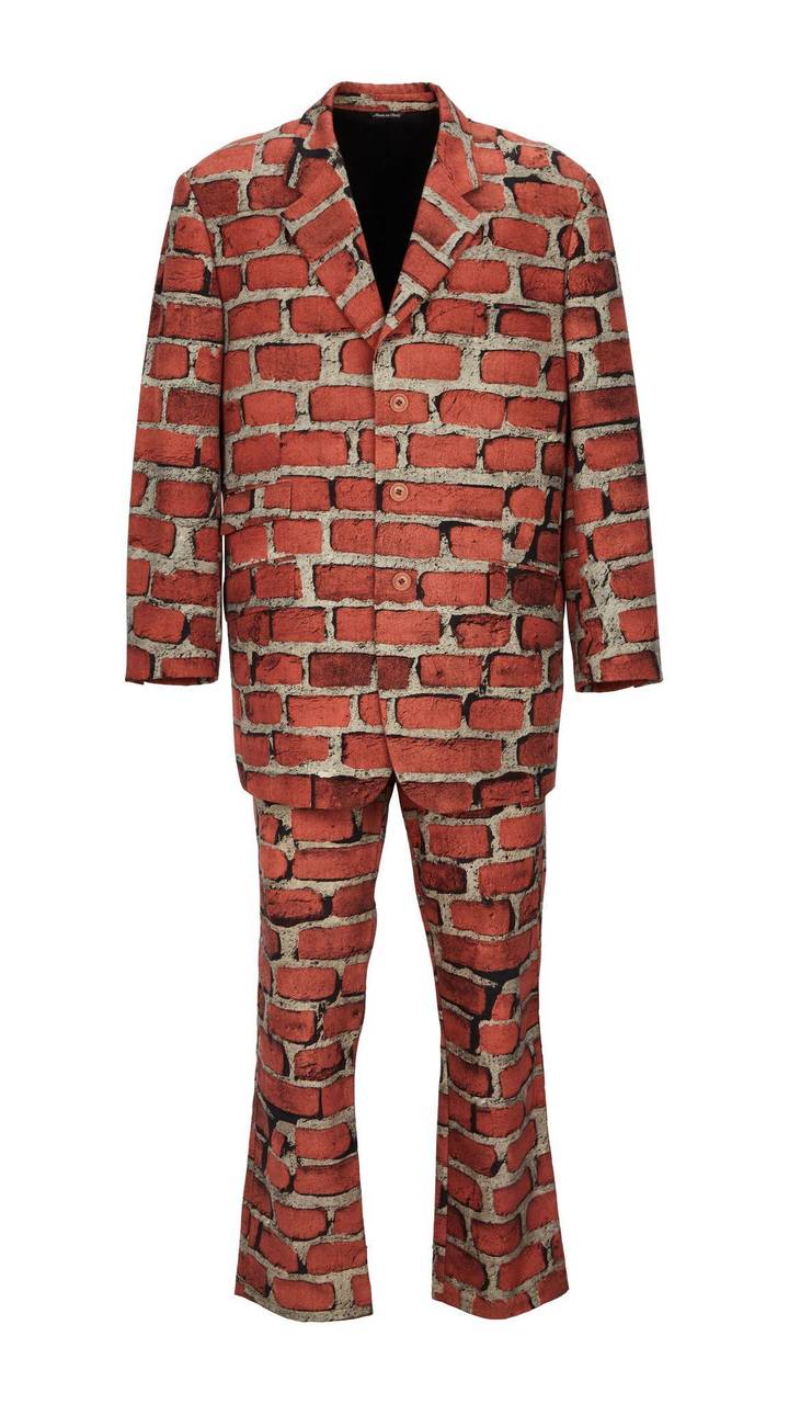 Vielleicht der kurioseste Auktionsgegenstand ist ein Moschino-Anzug im Look einer Ziegelsteinwand.