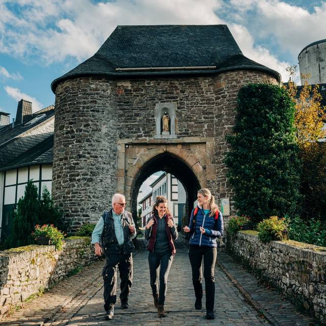 Der Eifelsteig läuft vom Rursee durch Gemünd, das Schleidener Tal, am Kloster Steinfeld vorbei nach Nettersheim und über Blankenheim weiter durch die Eifel.