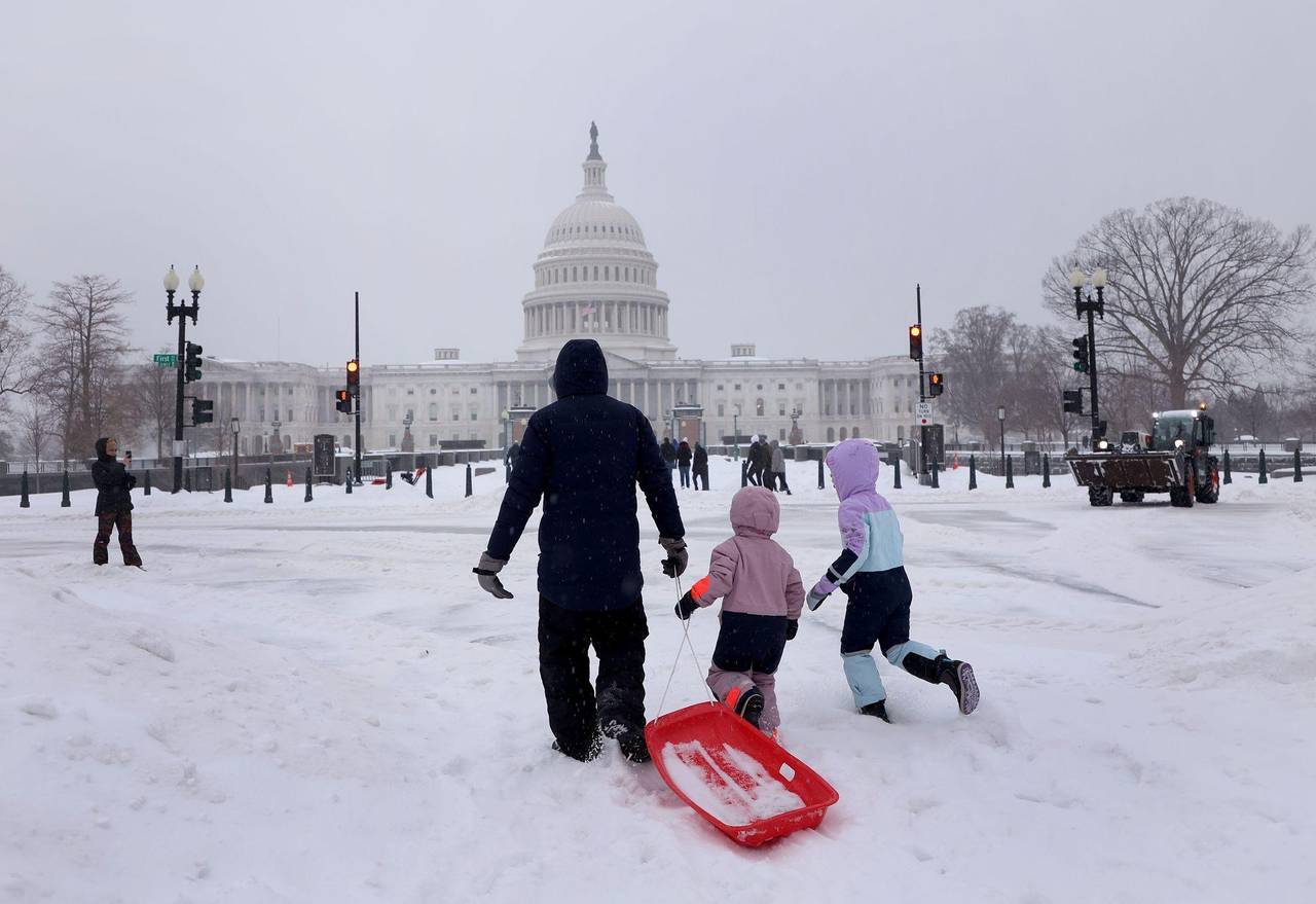 Trotz der angespannten Lage prägten am Sonntag auch fröhliche Winterszenen das Stadtbild: Mitten in Washington rodelten Kinder die verschneiten Hänge des Kapitols hinunter, Passanten stiegen auf Skier um.