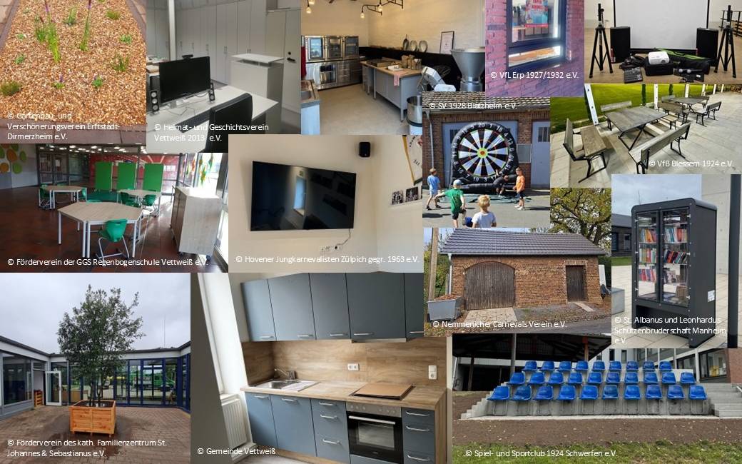 Mit die meisten Projekte wurden im Kreis Euskirchen gefördert, insgesamt neun in Weilerswist und Zülpich. Beispielsweise gab es eine neue Tribüne für den SSC Schwerfen, und eine Dach-Erneuerung für das historische Feuerwehrhaus in Nemmenich. Aber auch die Entwicklung einer App für Kommunen und insektenfreundliche Straßenbeete wurden gefördert. Neben Zülpich und Weilerswist zählen auch Vettweiß und Nörvenich im Kreis Düren sowie Erftstadt und Kerpen im Rhein-Erft-Kreis zur Förderregion.