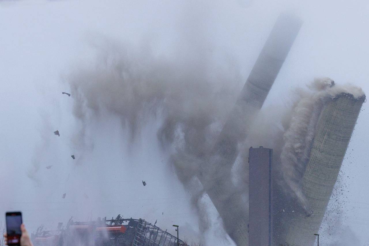 Neben dem Stahlbeton-Schornstein brachte der Sprengmeister auch eine Rauchgas-Entschwefelungsanlage und die Entstickungsanlage zu Fall. Insgesamt musste eine Masse von 15.500 Tonnen gesprengt werden. Dafür setzten die Experten 600 Kilogramm Sprengstoff für alle drei Bauwerke ein. Laut Mitteilung von Hagedorn können 97 Prozent des Materials recycelt werden.