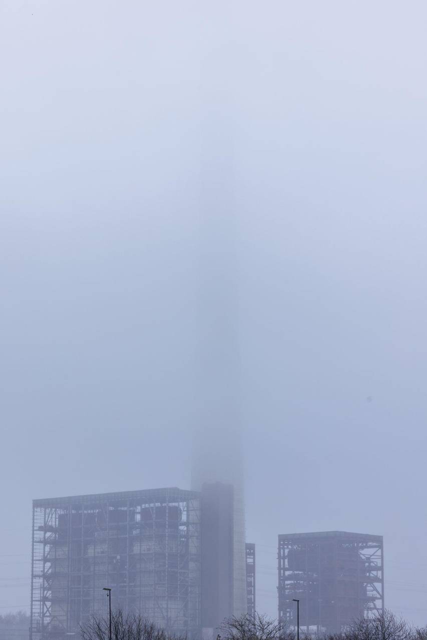 Die zahlreichen Schaulustigen konnten allerdings nur einen Teil des Spektakels sehen, denn die obere Hälfte des Schornsteins war von Nebel und Wolken verdeckt.