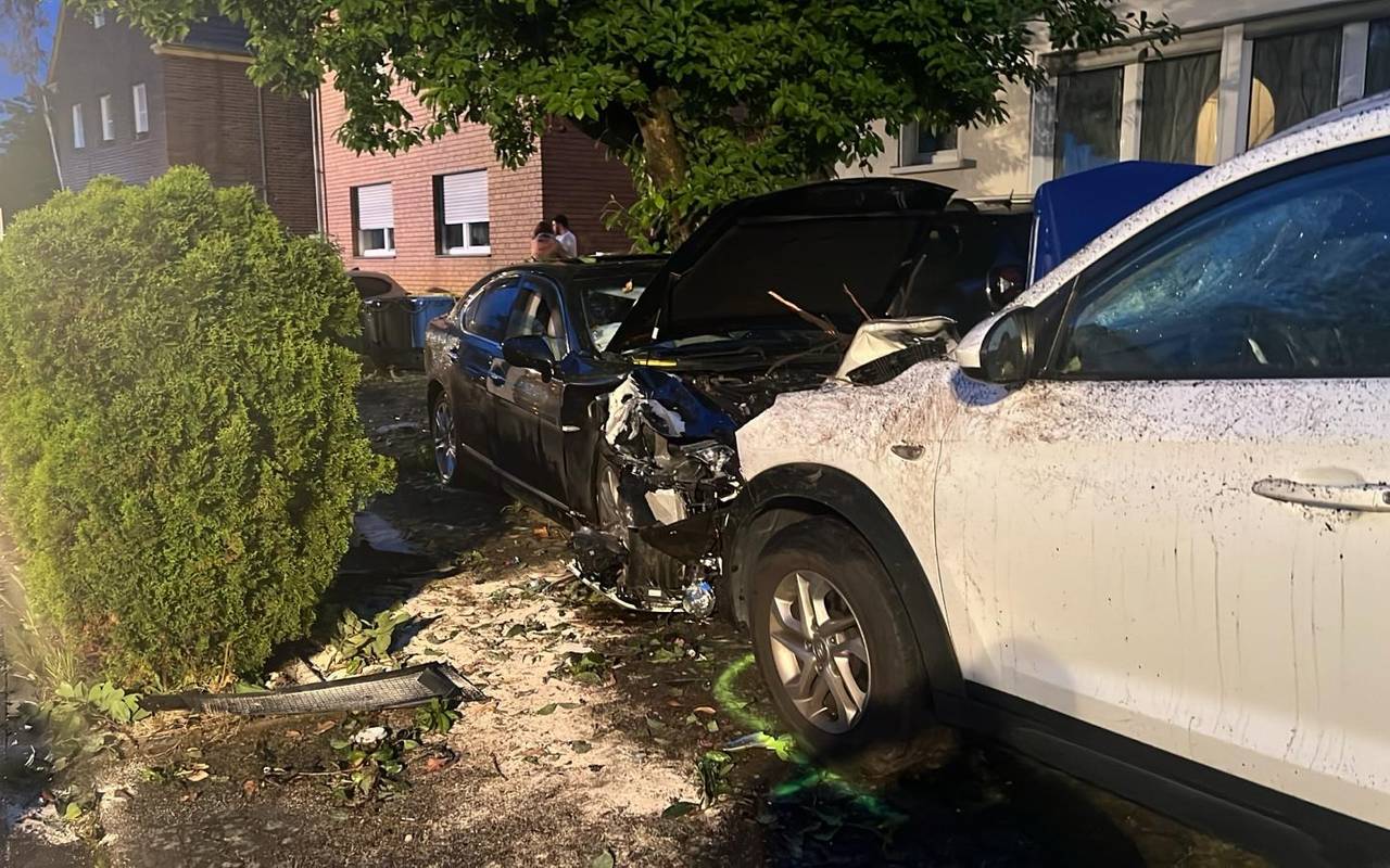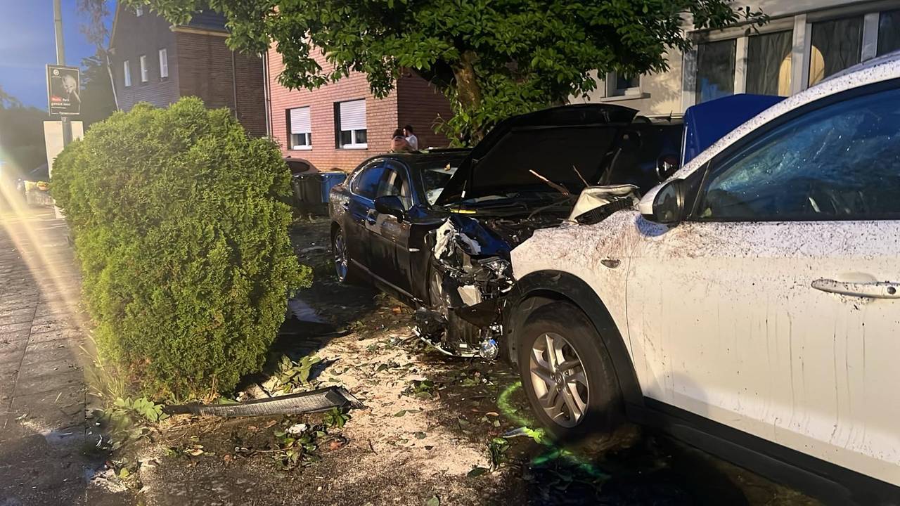 Das Auto krachte laut Polizei zunächst gegen einen Bordstein und geriet dadurch auf das Grundstück eines Mehrfamilienhauses. Dort prallte der Fahrer gegen ein geparktes Auto. Das wurde durch den Aufprall in die Hauswand geschoben, die dadurch beschädigt wurde. Anschließen schleuderte das Unfallfahrzeug dann gegen eine Laterne und weiter auf das Nachbargrundstück. Da prallte es dann gegen eine Mauer, weiter gegen einen Baum und schließlich noch frontal gegen ein anderes geparktes Auto.