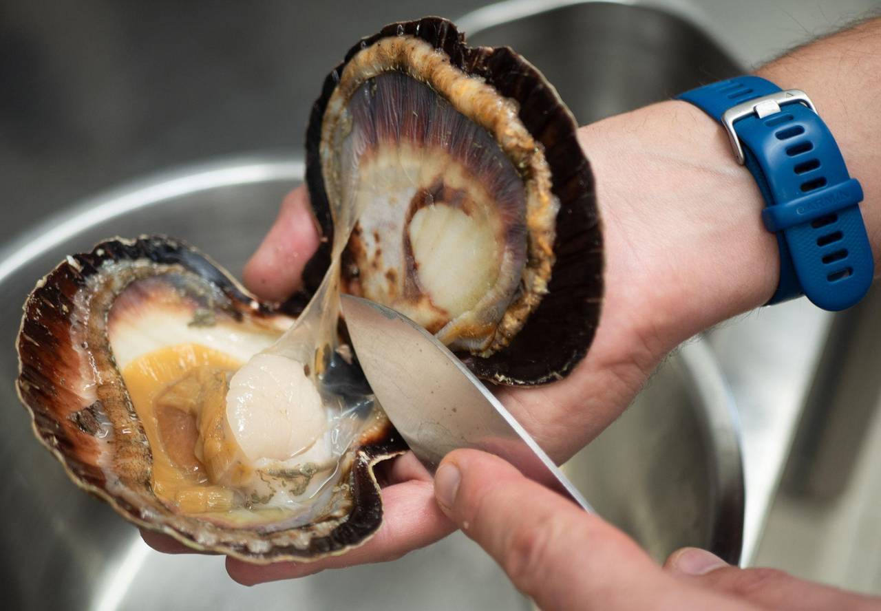 Das Wichtigste in der handtellergroßen Schale ist das weiße Muskelfleisch, die Nuss. Qualitativ zweite Wahl ist der orangefarbene, aromatisch intensivere Rogen. «Schon die Römer aßen die Muscheln, aber wir wissen nicht wie», so Lamort.