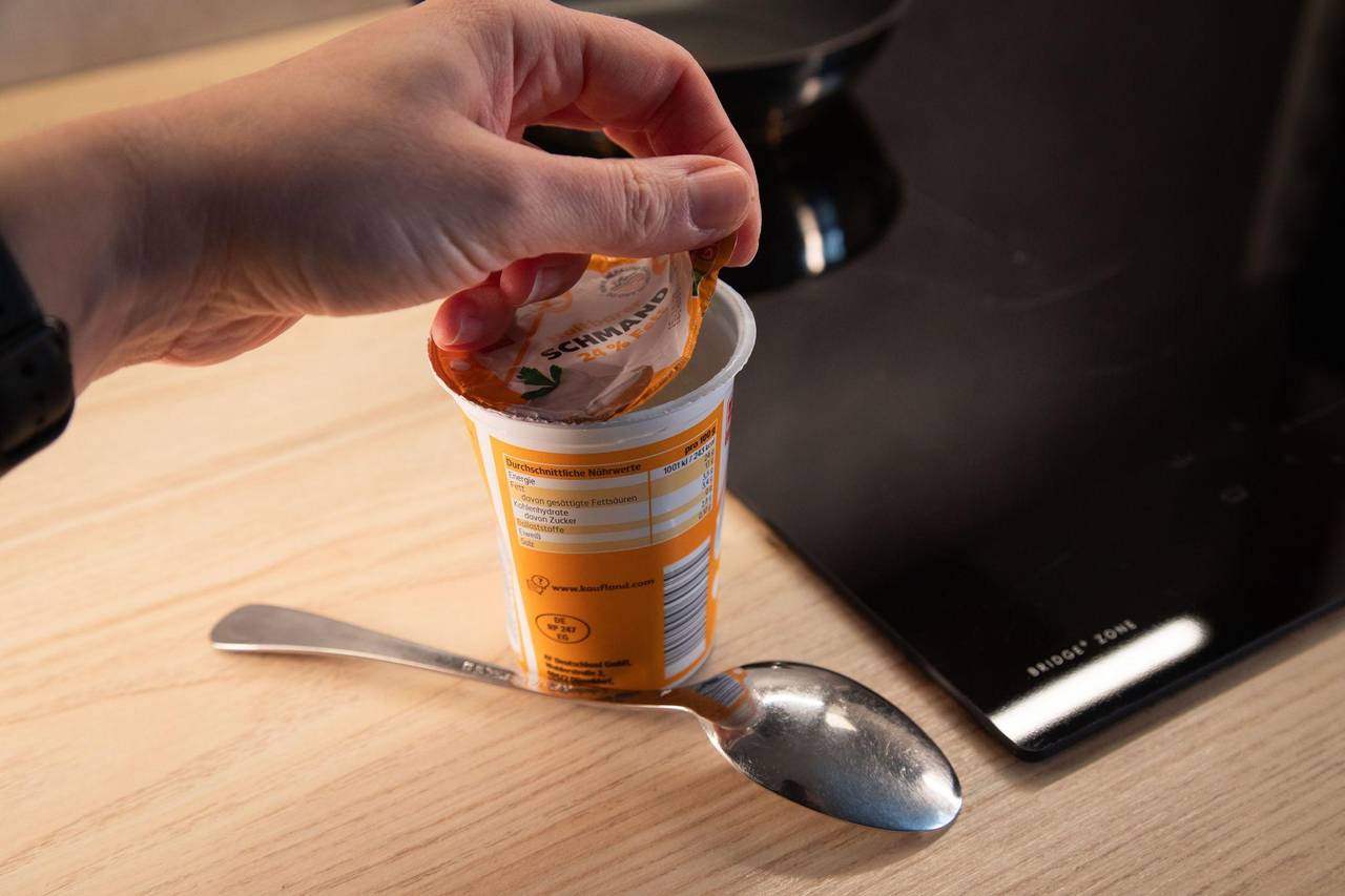 Joghurt oder Schmand verschließen: Klappt der Pfannen-Trick?