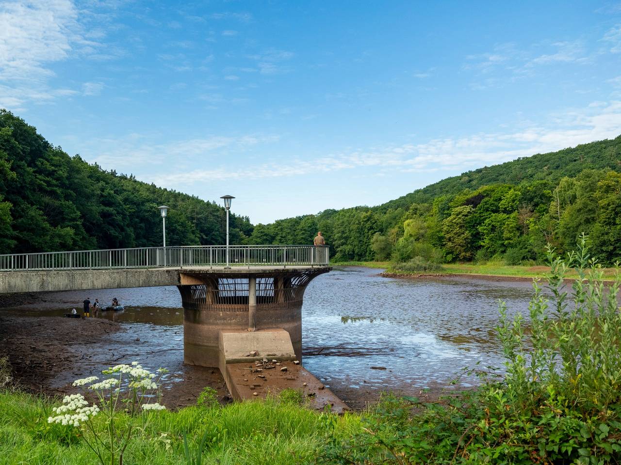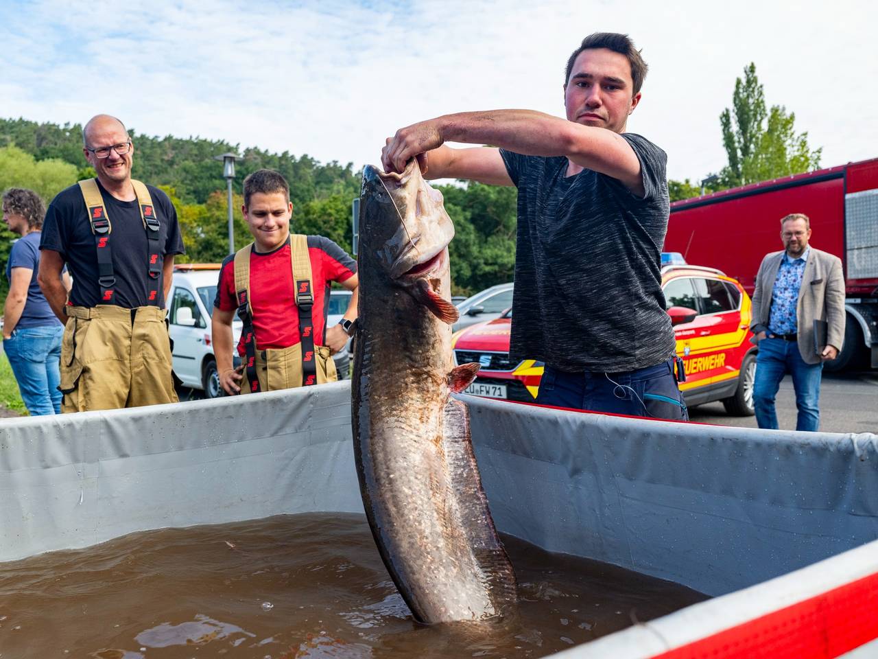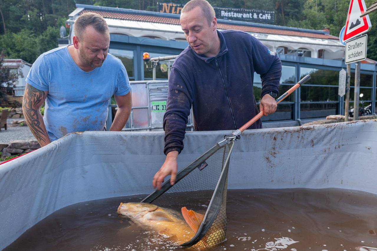 Laut der Stadt ist beim Ablassen des Wassers gestern Abend ein Schieber im Becken abgebrochen. Dadurch floss das Wasser unkontrolliert in den Bleibach. Da sich mehr Schlick als erwartet im See befand, konnten keine ausreichenden Pfützen für die Fische als Zuflucht entstehen. Einige Fische überlebten das nicht. Dennoch konnten Mitglieder der Fischereigemeinschaft Mechernich-Schleiden viele Tiere retten. Mitarbeiter der Stadt und die Feuerwehr haben Übergangsbecken für die überlebenden Tiere geschaffen und sie werden umgesiedelt.