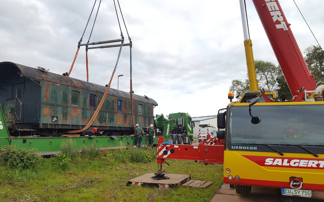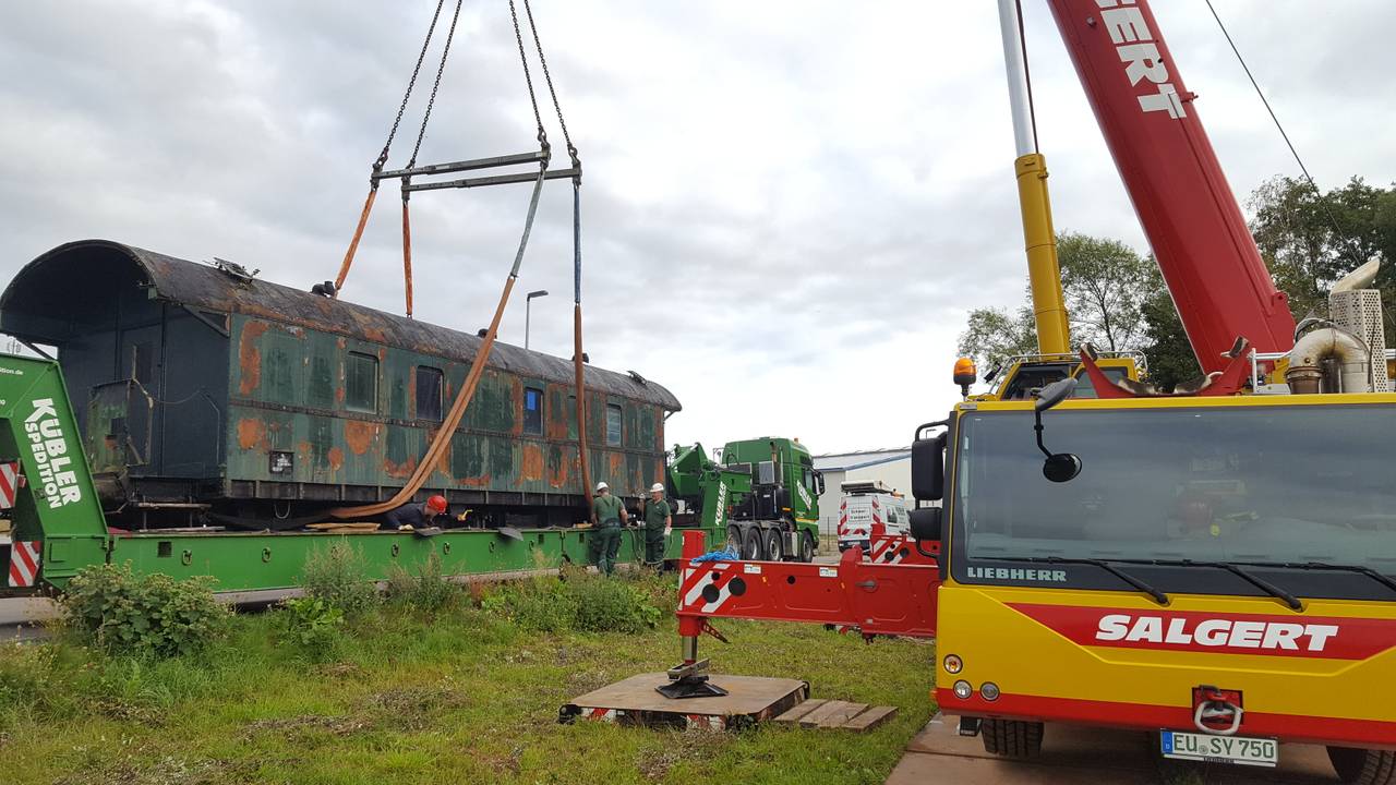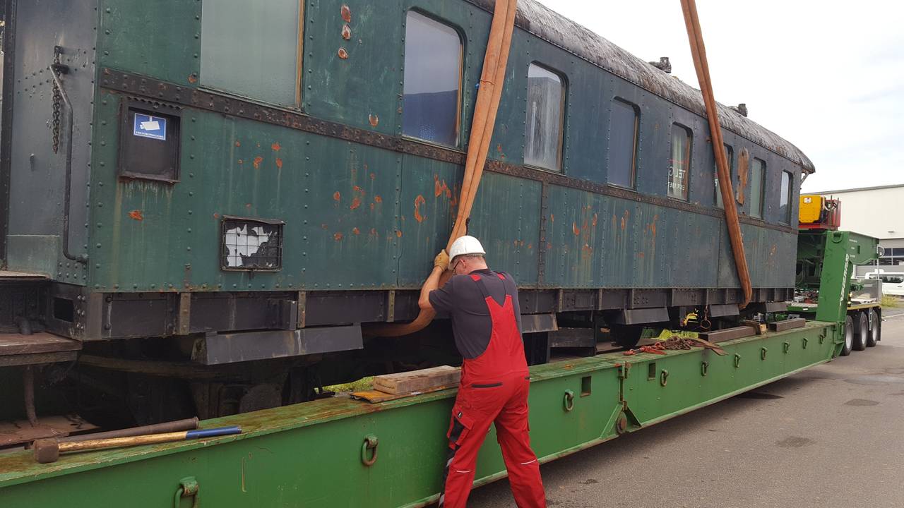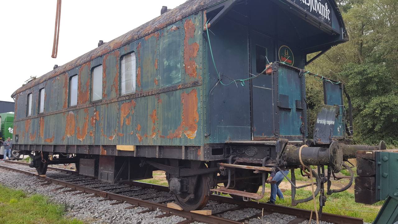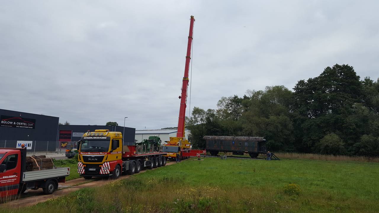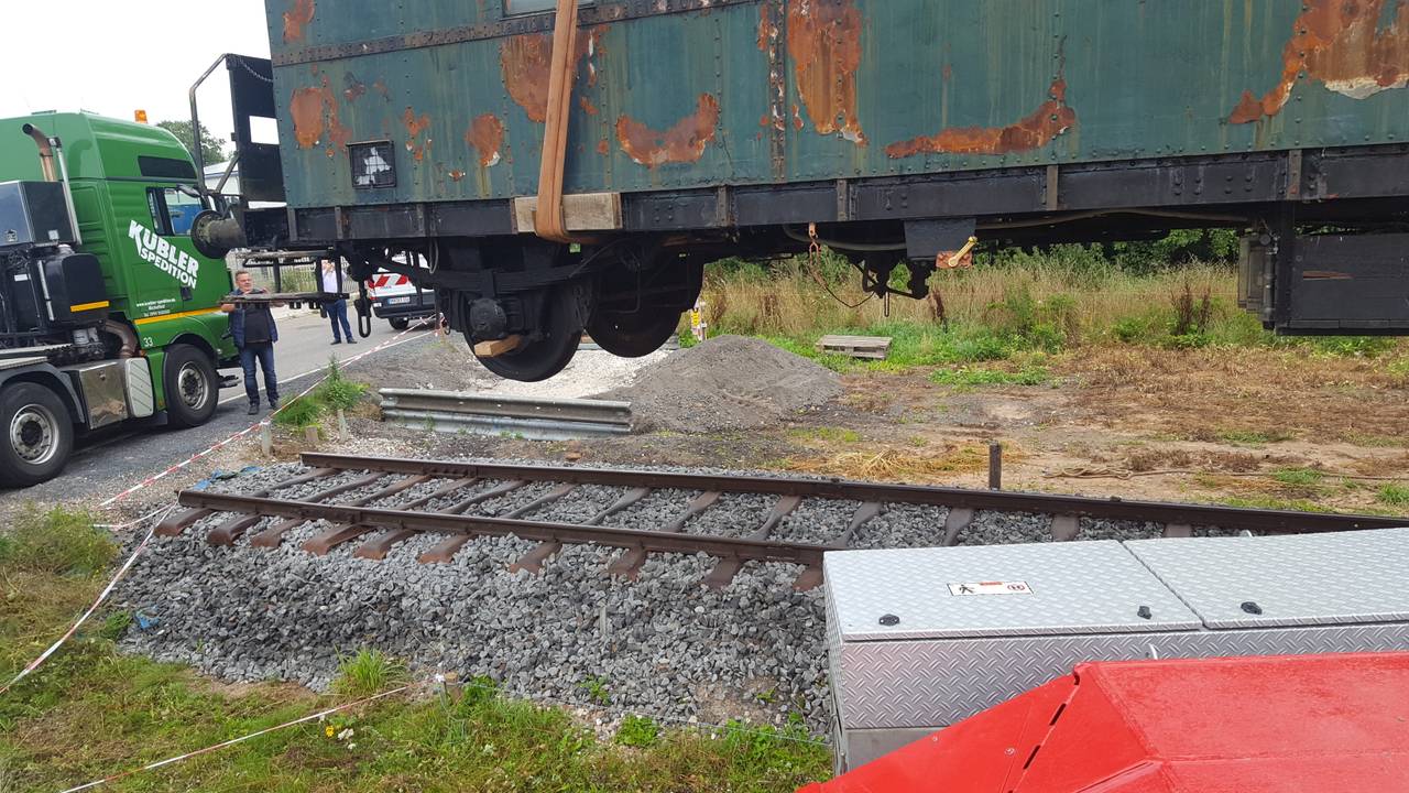 Mechernich-Satzvey ist um eine Sehenswürdigkeit reicher: Etwa 100 Jahre alt und hört auf den Namen "Donnerbüchse". Ein Privatier hat sich einen alten Eisenbahnwaggon gekauft. Und der ist jetzt per Schwertransport eingetroffen.