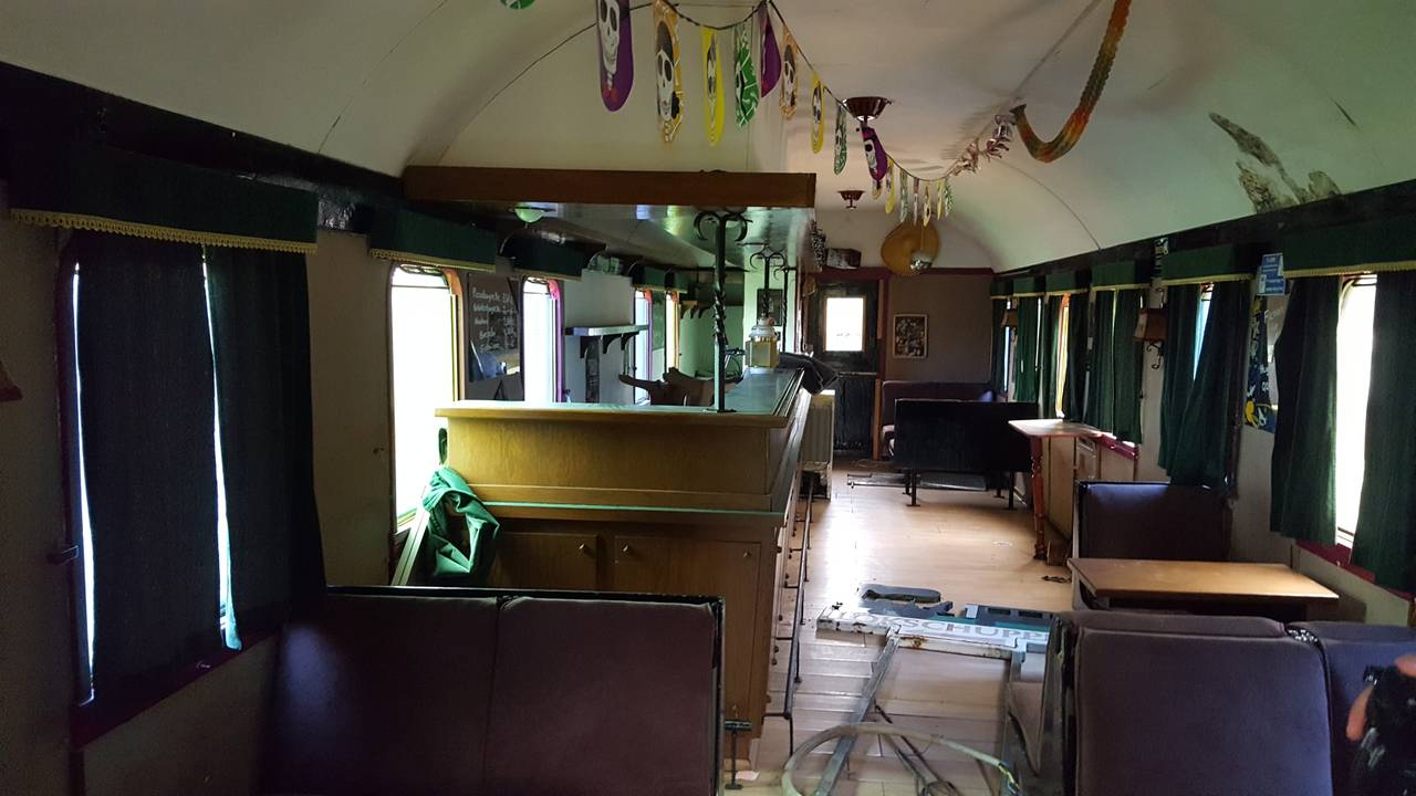 Eine Theke ist in der Donnerbüchse schon eingebaut. "Vermutlich aus den 1970er Jahren", glaubt Dederichs, der sich schnell um die nötigen Genehmigungen kümmern will. Aber bis dahin ist noch einiges zu tun. Denn der Waggon rostet ziemlich und das Dach ist undicht. Da sein Projekt noch viel Geld verschlingen wird, hofft er auf Spender und hat eine extra Homepage dafür eingerichtet.