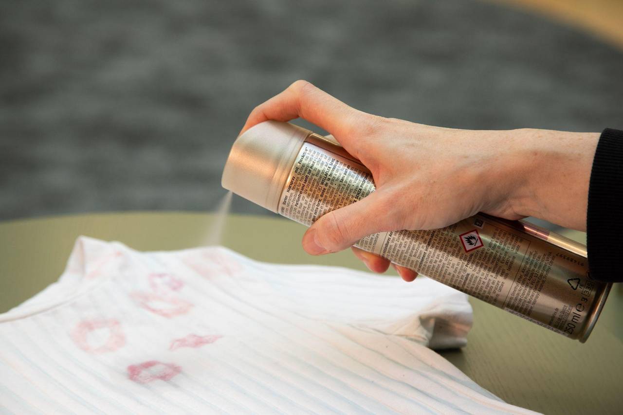 Und so geht's: Haarspray auf den Lippenstift-Fleck sprühen und zehn Minuten einwirken lassen. Danach mit einer Zahnbürste schrubben, bis der Fleck nicht mehr zu sehen ist.