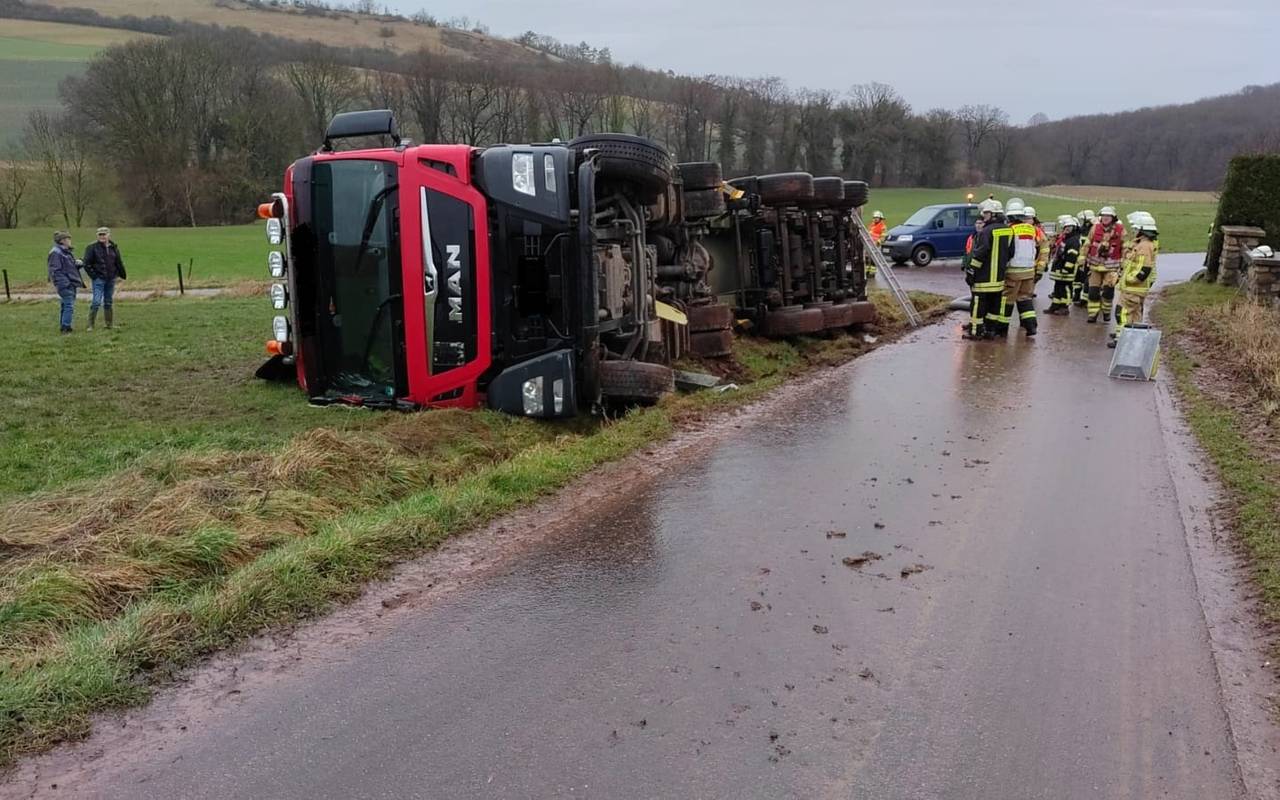 Mechernich: Gülle-Laster in Berg umgekippt