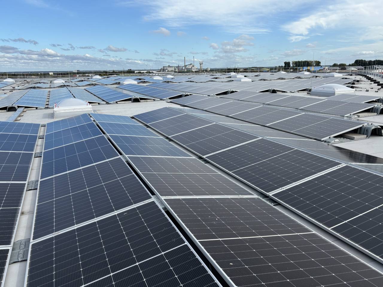 Miele hat am Standort Euskirchen rund 15 Millionen Euro in hochmoderne Technik investiert. Zum einen in ein neues Hochregallager und zum anderen in Energietechnik, nämlich in ein großes Solarfeld auf dem neuen Hallendach sowie in eine Geothermie-Anlage. Damit wird Erdwärme aus über 90 Metern Tiefe genutzt.