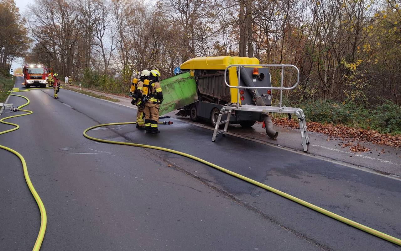 Mit Gas betriebene Kehrmaschine in Brand geraten