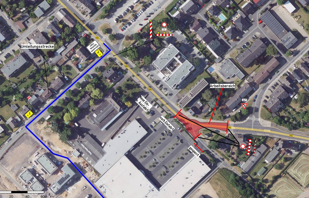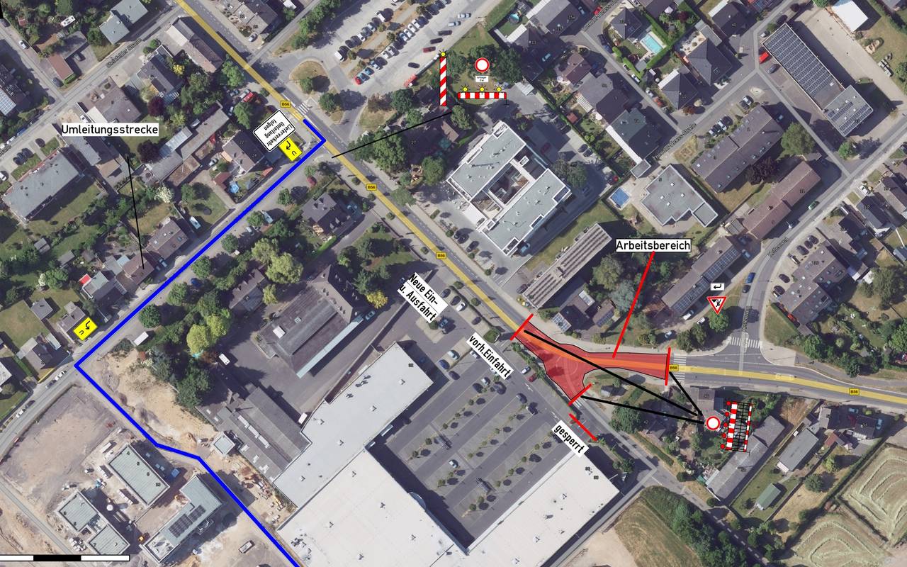 Wer regelmäßig auf der B56 bei Zülpich unterwegs ist, muss nächste Woche (32. KW) eine Umleitung fahren: Die B56 wird am Fachmarktzentrum an der Bonner Straße in Zülpich saniert und deshalb in dem Bereich komplett gesperrt.