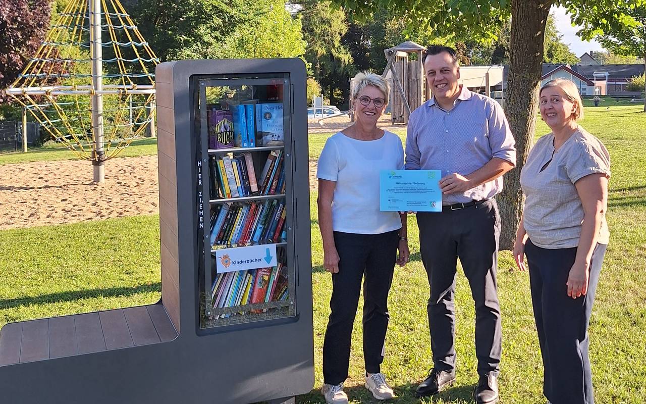 Am Spielplatz in Kirchheim wurde eine Kombination aus Bücherschrank und Sitzbank aufgestellt. Die Bürgerinnen und Bürger hatten sich das gewünscht und die Stadt hat es umgesetzt. Das Projekt hat zwar mehr als 6.500 Euro gekostet, doch die Stadt musste nur zehn Prozent selbst tragen, der Rest kam aus Fördergeldern.