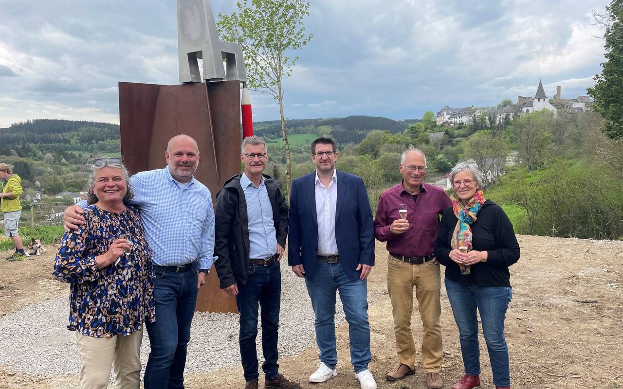 Wer in Dahlem-Kronenburg unterwegs ist, kann eine neue Skulptur bewundern. Sie ist fast vier Meter hoch, dazu gibt es einen Blick auf den mittelalterlichen Burgort, die Kirche und das Ehrenmal. Die Skulptur hat den Namen „Ein sicherer Ort“.