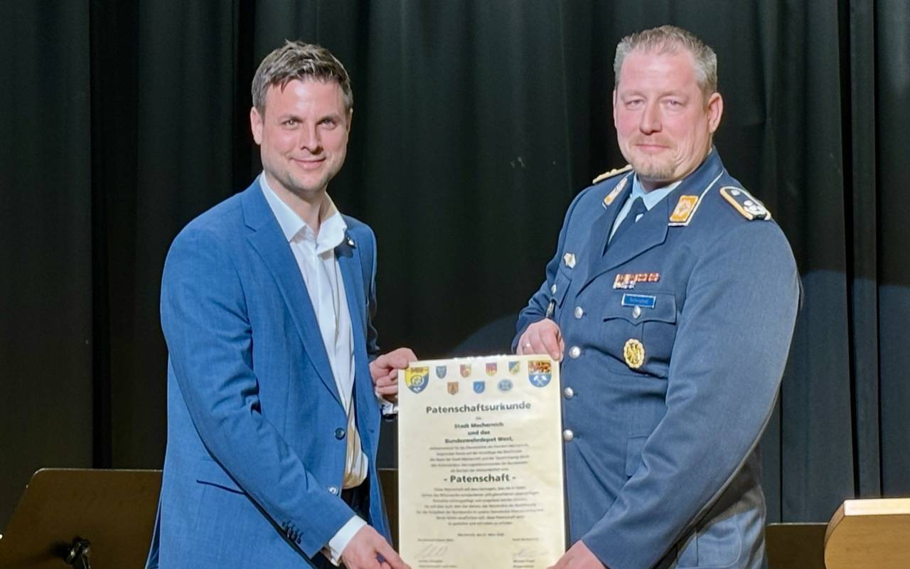 Mechernichs Bürgermeister Michael Fingel und der Standortälteste von Mechernich, Oberstleutnant Jochen Schnabel, unterschrieben auf einem gemeinsamen Jahresempfang eine entsprechende Urkunde. Damit bekräftigen beide die erste Urkunde aus den 1980er Jahren. Im Gespräch mit Radio Euskirchen betonten Fingel und Schnabel, dass die Zusammenarbeit von Stadt und Bundeswehr im Mechernicher Alltag gelebt werde. Viele Mechernicher arbeiten am Standort. Die Bundeswehr ist seit kurz nach ihrer Gründung Ende der 1950er Jahre in Mechernich stationiert und betreibt am Bleiberg unter anderem ein unterirdisches Materialdepot. Dieses erstreckt sich in 130 Metern Tiefe über mehrere Kilometer. Es gilt als einer der zentralen Materialstandorte der Bundeswehr in Deutschland.