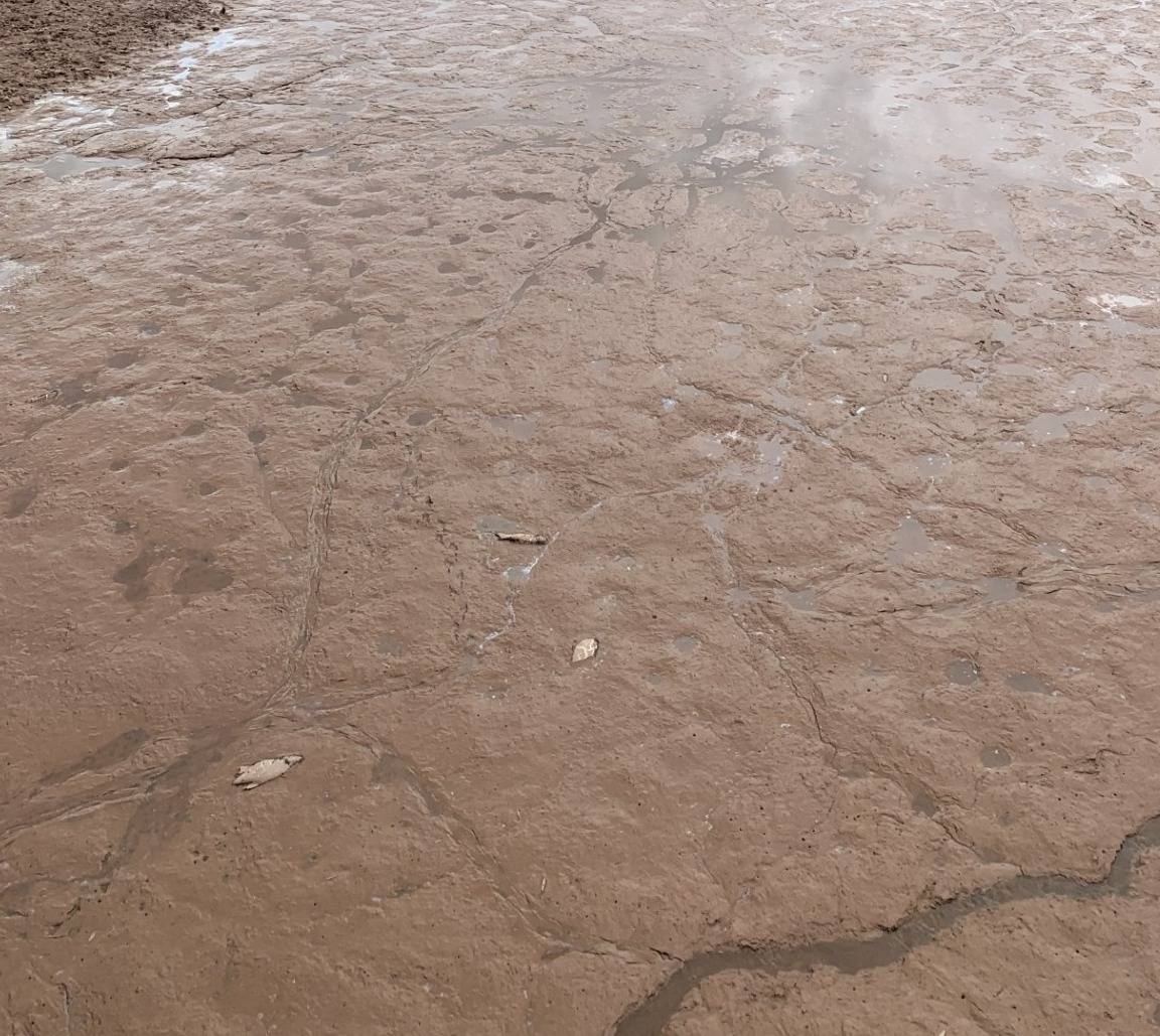 Lavagestein aus der Baustraße soll gleichzeitig als Filter dienen, um zu verhindern, dass der Schlamm aus dem Mühlensee in den Bleibach läuft. Weil der Bleibach durch den See fließt, nimmt er auf seinem Weg immer ein bisschen Schlamm in Richtung Kommern mit.