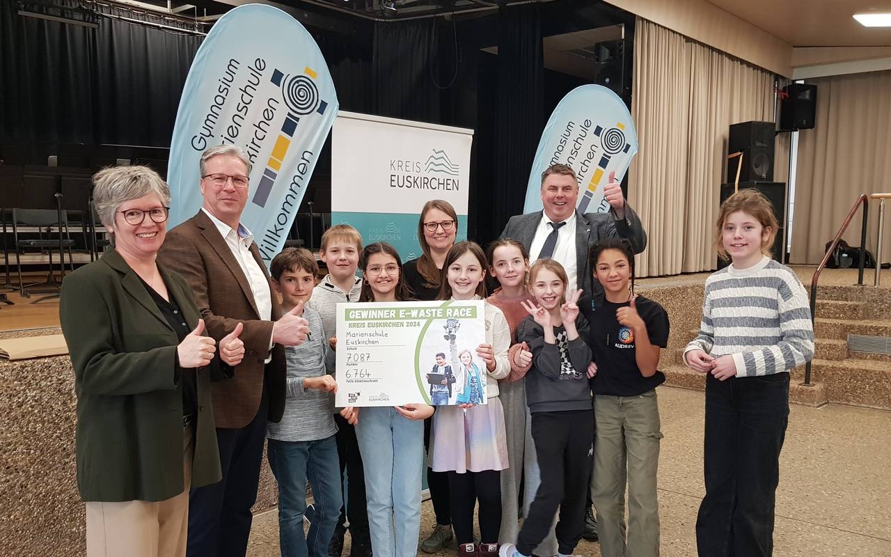 Alle zehn Schulen haben zusammen den Deutschlandrekord des Wettbewerbs geknackt - sie haben zusammen mehr als 34.500 Elektroteile gesammelt. Und die Marienschule in Euskirchen hat nicht nur den Wettbewerb hier gewonnen, sondern auch noch so viel Elektroschrott gesammelt, wie keine Schule vorher. Die Marienschule darf jetzt einen Schulausflug machen. Platz zwei und drei gehen an das St. Angela Gymnasium und das Franken Gymnasium in Zülpich, sie bekommen jeweils Geld für die Klassenkasse. Den Wettbewerb "E-Waste Race" hat die gemeinnützige Initiative "Das macht Schule" nach Deutschland geholt. Dabei treten Schulen seit 2021 gegeneinander an und wollen sich mit ihren Sammelergebnissen überbieten - und gleichzeitig Rohstoffe retten.