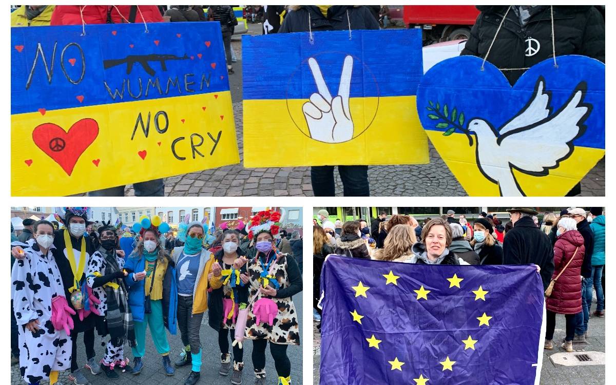 In Kommern hatten sicj Menschen spontan zu einer Demo zusammengeschlossen. In Euskirchen am Alter Markt hatte die SPD zu einer Friedenswache aufgerufen. Dort haben rund 120 Menschen mitgemacht. Viele zeigten sich im Radio Euskirchen-Interview stark betroffen von den Bildern aus der Ukraine. Es sei wichtig, Solidarität zu zeigen. Einige Teilnehmer waren am Rosenmontag kostümiert, andere zeigten Friedenstauben, Kerzen, Plakate und Fahnen der Ukraine. Bürgermeister Reichelt war beeindruckt von der Versammlung als Zeichen für den Frieden.