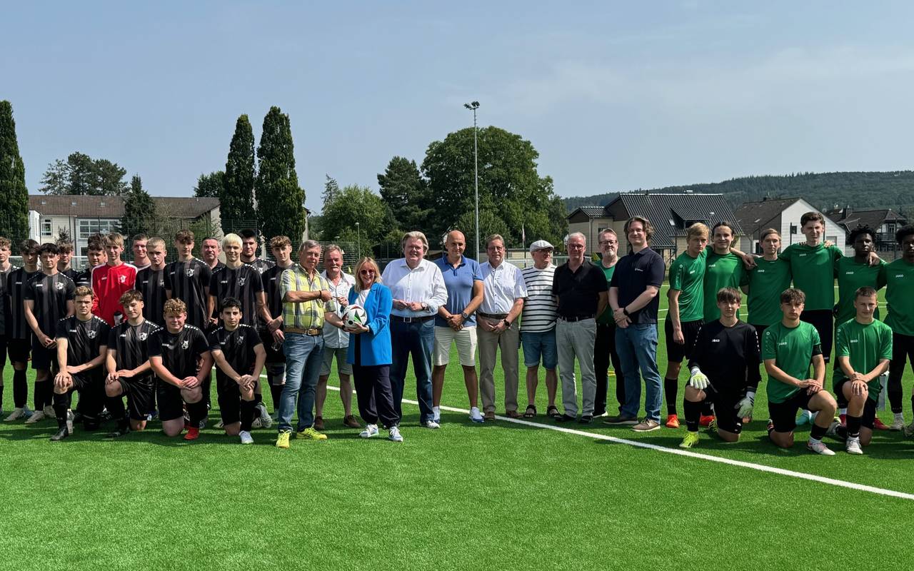 Der bei der Flutkatastrophe völlig zerstörte Sportplatz in Bad Münstereifel-Arloff ist am Wochenende feierlich wiedereröffnet worden. Der Sportplatz verfügt jetzt über ein neues Fußballfeld mit Kunstrasen und eine neue energieeffiziente LED-Flutlichtanlage.