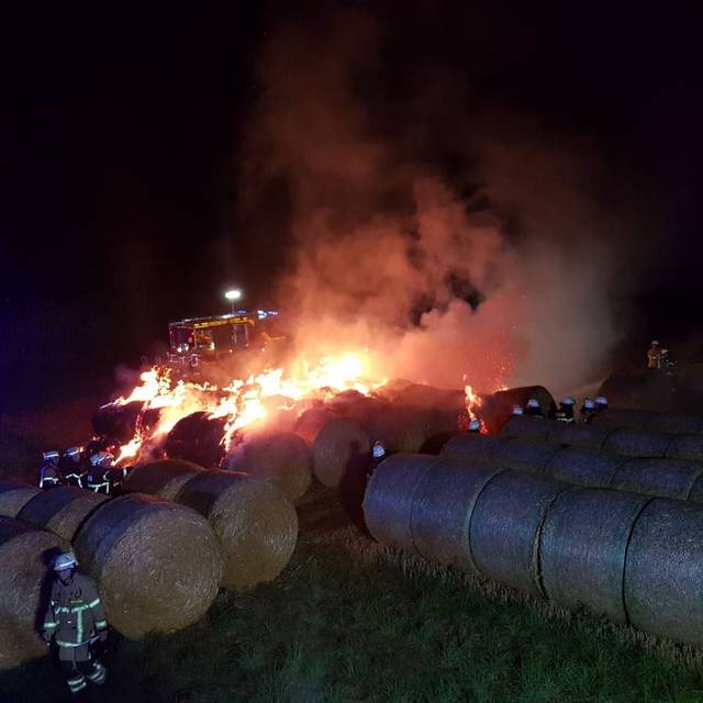 Bei Nettersheim-Frohngau haben am Mittwochnachmittag etwa 100 Strohballen in Flammen gestanden. Die Feuerwehr war bis in die Nacht im Einsatz.