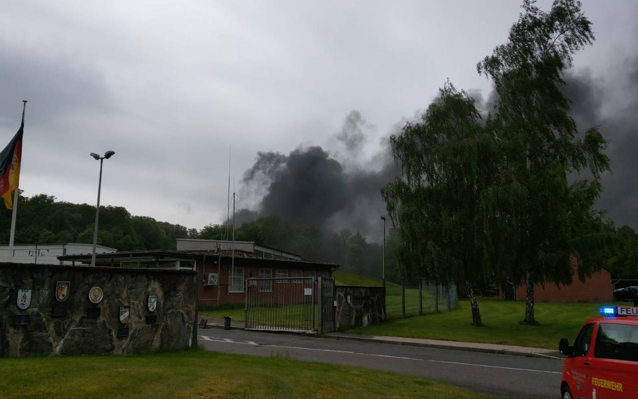 Die schwarze Rauchsäule war schon von Weitem aus sichtbar. Auf dem Gelände des Munitionsdepots zwischen Euskirchen-Flamersheim und Rheinbach ist am Dienstagnachmittag ein Diesel-LKW in Flammen aufgegangen.