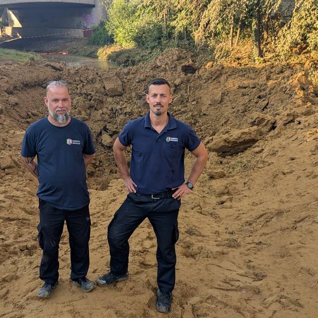 Gegen 17:50 Uhr konnten die Experten Entwarnung geben. Der Kampfmittelbeseitigungsdienst hat den Blindgänger unschädlich gemacht.