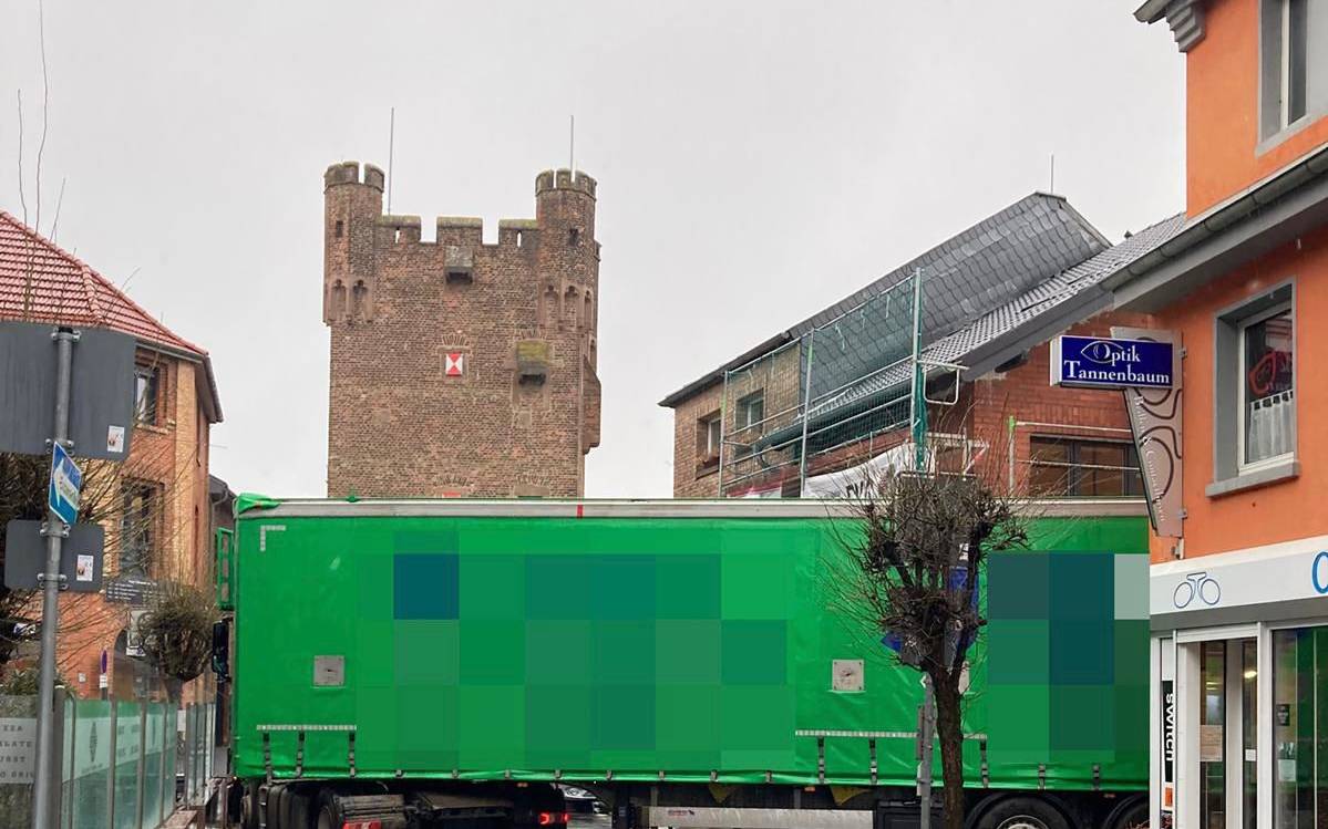Eine Hauswand wurde beschädigt – wie stark ist noch nicht klar. Laut Polizei hatte sich der auswärtige Fahrer wohl auf sein Navi verlassen. Die Münsterstraße war wegen der Bergungsarbeiten bis zum Nachmittag gesperrt.
